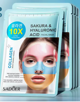 ماسک صورت کلاژن رنگین کمان SADOER، ضد چروک، مرطوب کننده، سفید کننده، ضد پیری، ماسک صورت هیالورونیک اسید